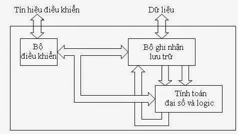 Sơ đồ cấu trúc của CPU trên hình 3. Nó bao gồm cơ cấu đại số logic để tính toán dữ liệu, các bộ ghi nhận lưu trữ tạm thời dữ liệu và bộ điều khiển các chức năng khác nhau. Ở các CPU thế hệ mới, người ta thường chế tạo CPU, ROM, RAM trong một IC, gọi là bộ vi điều khiển (Microcontroller).