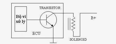 Tín hiệu điều khiển từ bộ vi xử lý sẽ đưa đến các transistor công suất điều khiển relay, solenoid, motor,…Các transistor này có thể được bố trí bên trong hoặc bên ngoài ECU.
