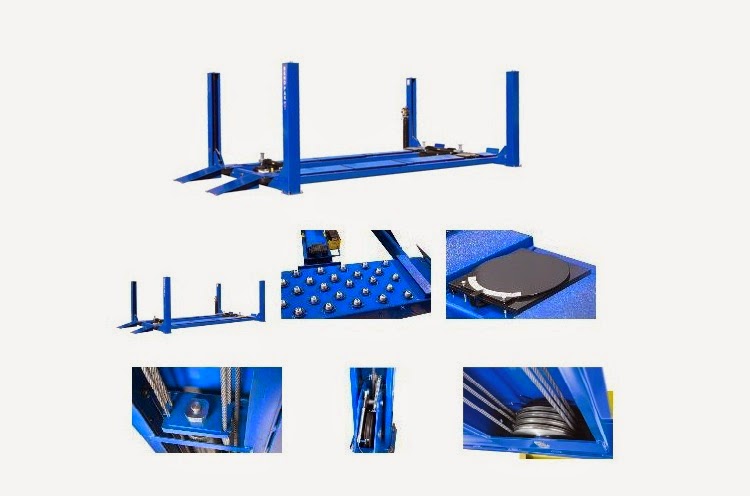 Cầu nâng 4 trụ có ô đĩa kiểm tra góc lái và tấm trượt bánh sau